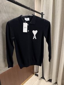 Ami Paris Black Knitted Polo Full sleeves IMPORTED